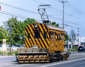 電鉄倶楽部では函館市交通局様のご協力のもと、除雪車の運転会を行います。 「ササラ電車」の愛称で知られる除雪車は大正8年に東京の市電として誕生、昭和9年に函館へ渡り、昭和12年より除雪車に改造されました。 そしてササラ電車になって70年、交通局技術陣の入念な整備により現役を続けています。 このように歴史のある貴重な車両ですが、通常は降雪に備えて待機しており、確実に走行する機会は試運転などに限られています。 この機会にどうぞ撮影をお楽しみください。 |