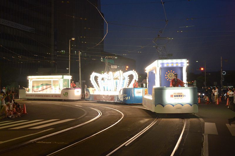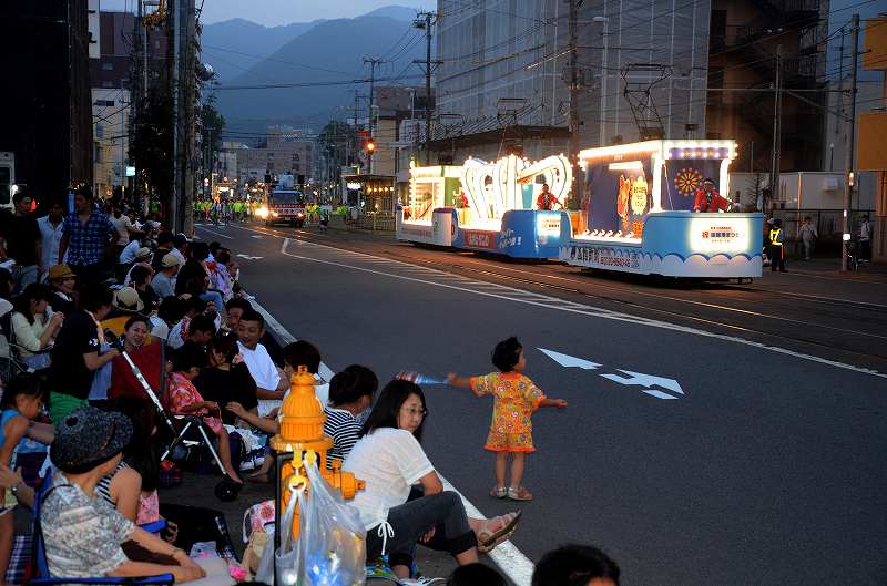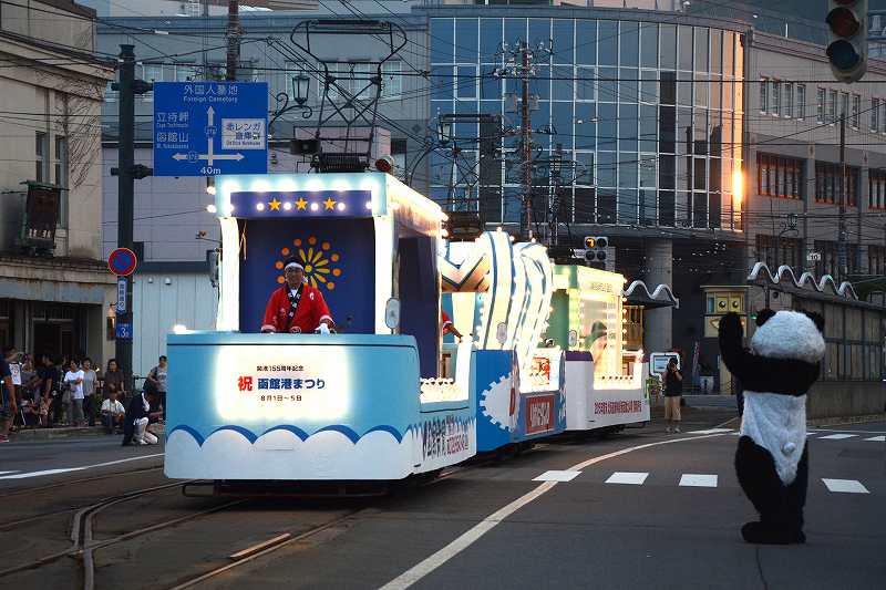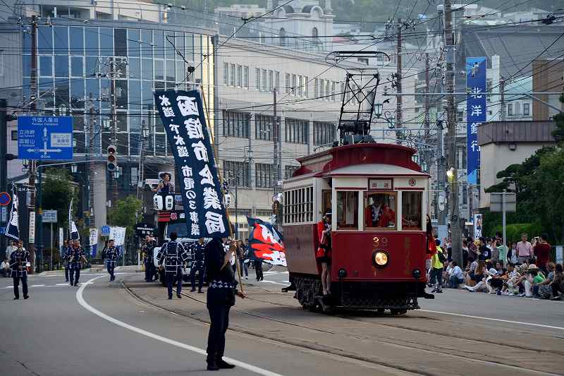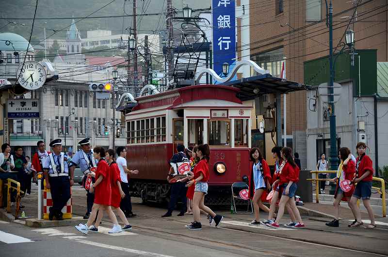 港まつりのパレードを見に来ましてん。いえね、函館港まつりはハイカラ號と花電車がパレードに参加するんですわ。