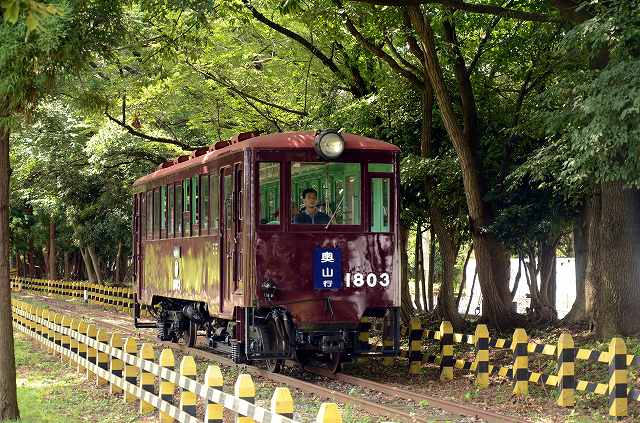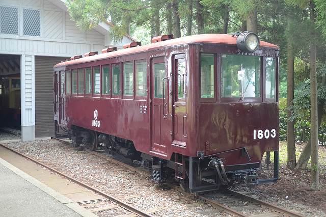 1803号は遠鉄発足70周年の記念事業で2年間だけ遠鉄時代の塗装に復元してますねん。普段は尾小屋にいてますねんけど、今年は9月14日(日)まで小松のなかよし鉄道に出張中ですねん。