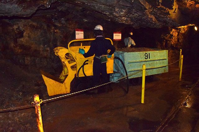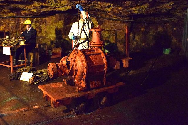 ええっと、秋田県の北東部は昔から銅の産地でしてな。小坂とか花岡には同和鉱業の鉄道がありましたやろ。ここ尾去沢にも大きな銅の鉱山がありましてな。その跡地が博物館になっていて、坑道に入れるんですな。