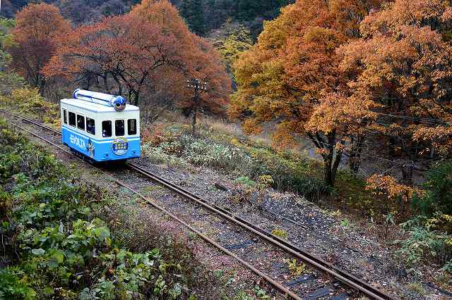紅葉の中をコトンコトン。