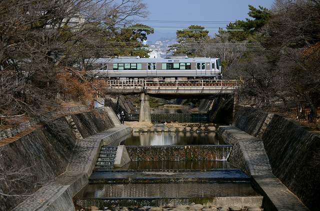 ええっと、ちょちょっと鉄分補給がしたくなりましてな。家から歩いて30分ほど、散歩がてら夙川に来てますねん。東海道線の鉄橋を横からびゅわーしますねん。