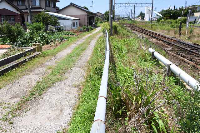 この先線路跡は宅地に飲み込まれますが、1キロほど行くと線路跡っぽい築堤になります。