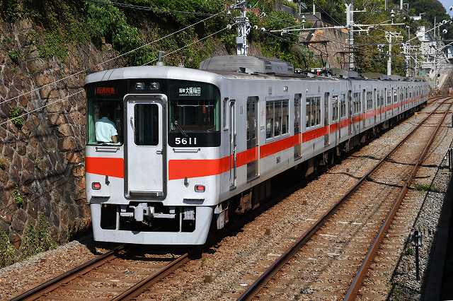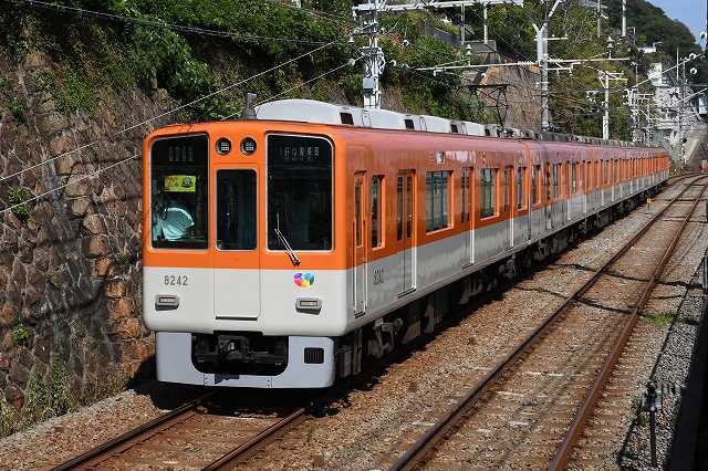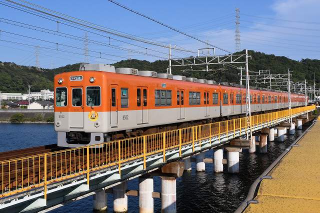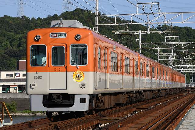 山陽電車に来てますねん。いえね、阪神電車の8502号にタイガースの優勝副標が付いてる、言うんで撮りに来たんですわ。