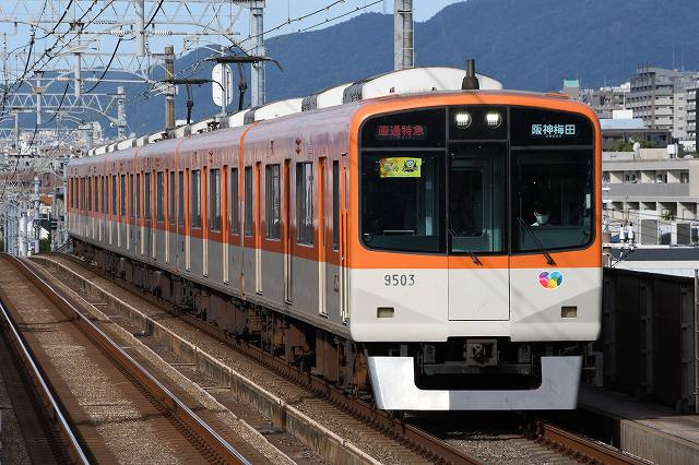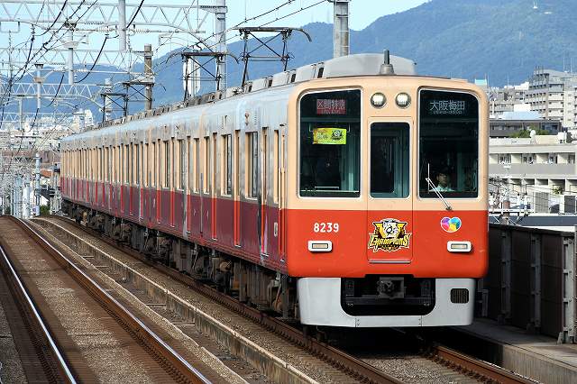 区間特急を、パチリ。やっぱり阪神電車はこの色やで。
