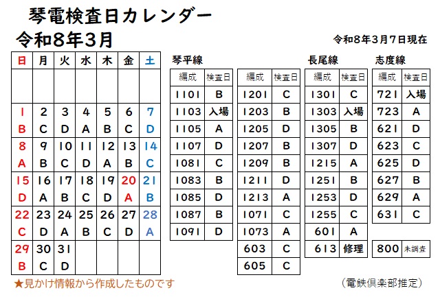 運転しない日や、昼休みに仏生山へ引き上げたり、午後から出てきたりすることもあります。日曜はやっていないようです。