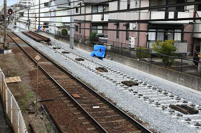 多肥駅の工事。ホームと駅舎、駅前広場の整備が進んでいます。